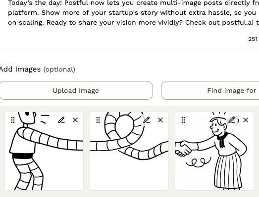 You asked, and we’re excited to deliver. As part of v0.6.2, Postful now supports multi-image carousels across all supported networks: